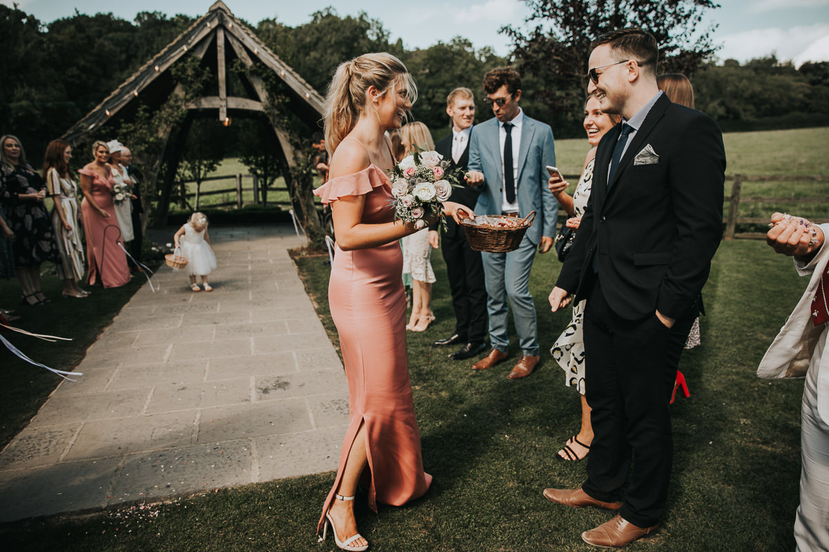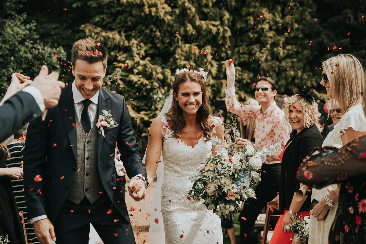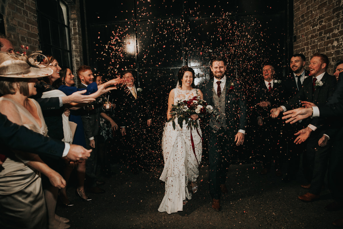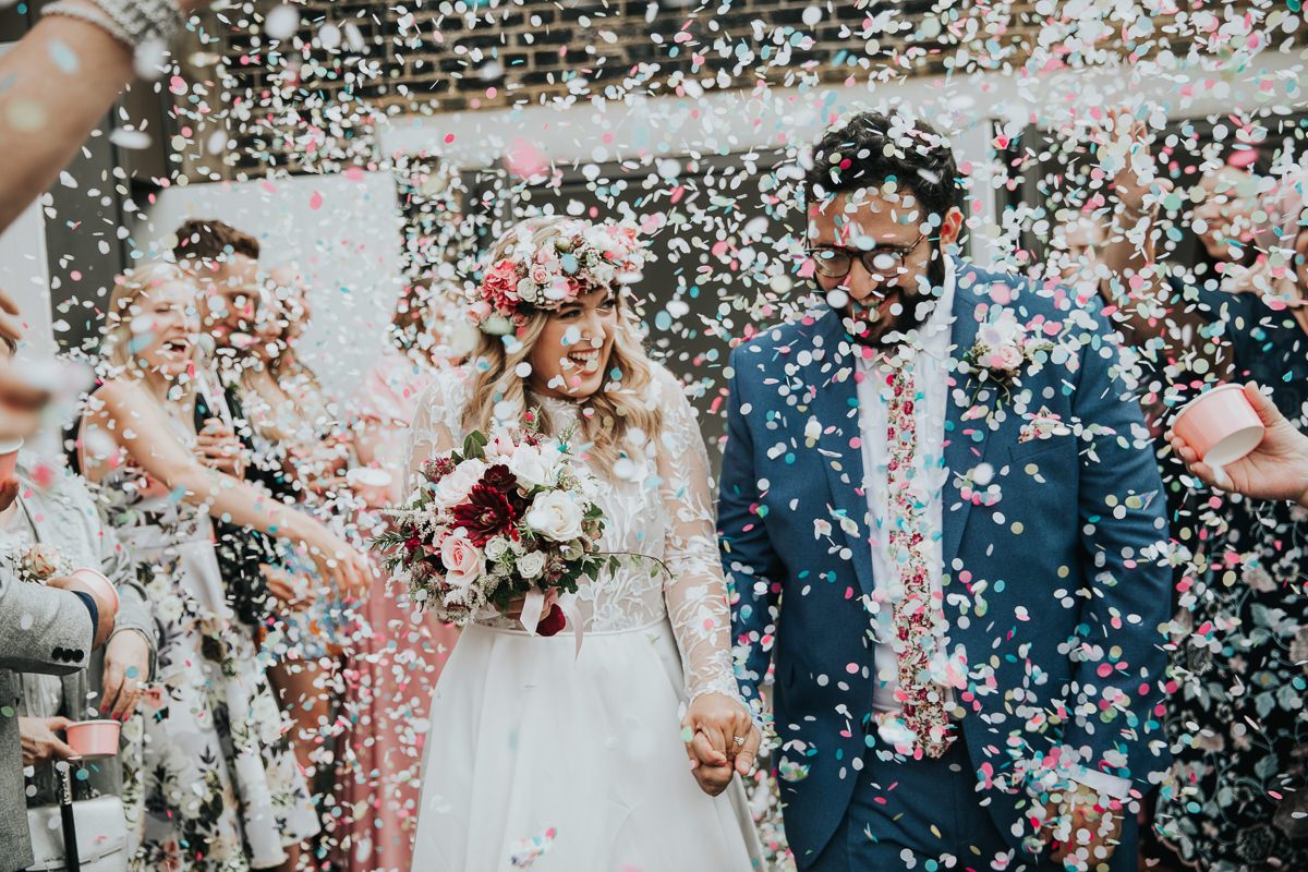 Yes, there are options! Most couples opt for a ‘confetti tunnel’ where everyone lines each side and the couple walk through the middle, either walking back up the aisle during an outdoor wedding ceremony or outside the ceremony venue after your quiet time together. What a great exit as newlyweds! Another option is for you to stand in the middle and stay static whilst your guests surround and bombard you with confetti, or have the confetti thrown right after your whole-group photo (if you’re having one) – that way everyone gets covered in confetti! Whichever you opt for, a great tip is for all your guests to throw the confetti up nice and high so it flutters down on you, and remember lots of confetti per person! Walk slowly to take it all in and really enjoy the experience.