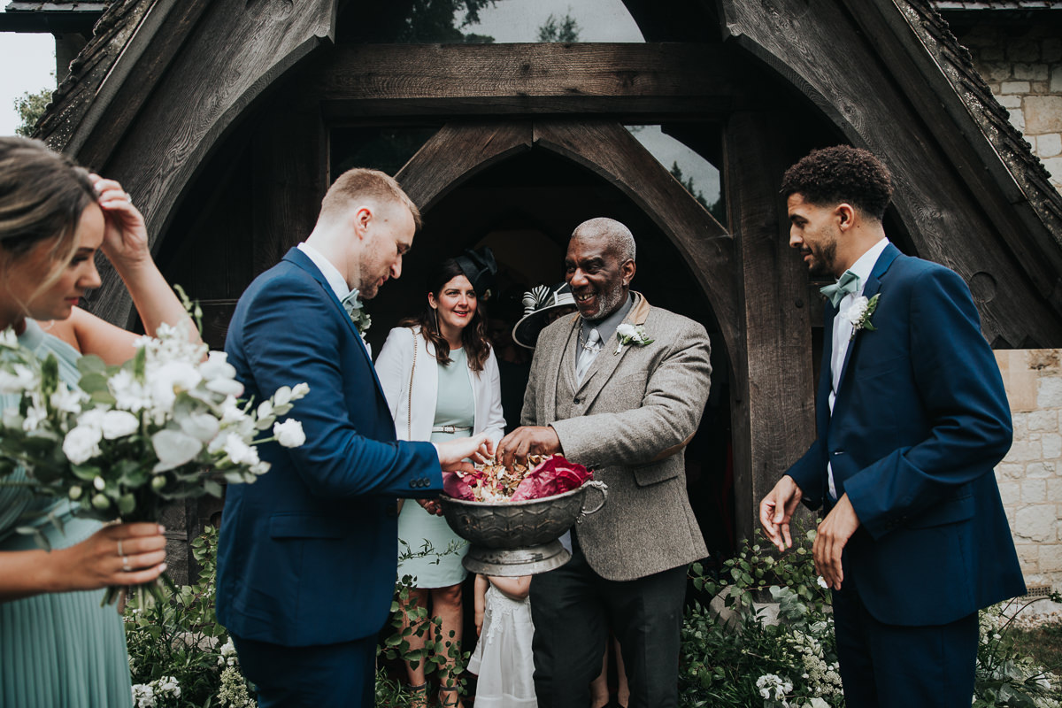 Firstly, it’s important to note that not every church or venue allows confetti, so please check as early on in your wedding planning as possible to avoid any disappointment and to have a back-up plan if need be. Most churches allow confetti down the path (far enough down so that the wind doesn’t blow confetti back into the church!) or just outside the church gates; Registry offices and licensed ceremony venues usually allow confetti just outside the doors. Wherever you’re having your marriage ceremony, I always advise to sneak off for a few quiet minutes together after you’ve walked back up the aisle – to actually say ‘hello’ to one another. I think it’s really important to have a few minutes alone and spend those just-married moments together rather than hugging a long-lost auntie! Believe me, my couples always tell me how nice it was to have a quiet breather together, as it’s the first time they’ve properly seen each other on their wedding day. During your alone time I can have your guests gather wherever and however you’d like to have your confetti thrown.